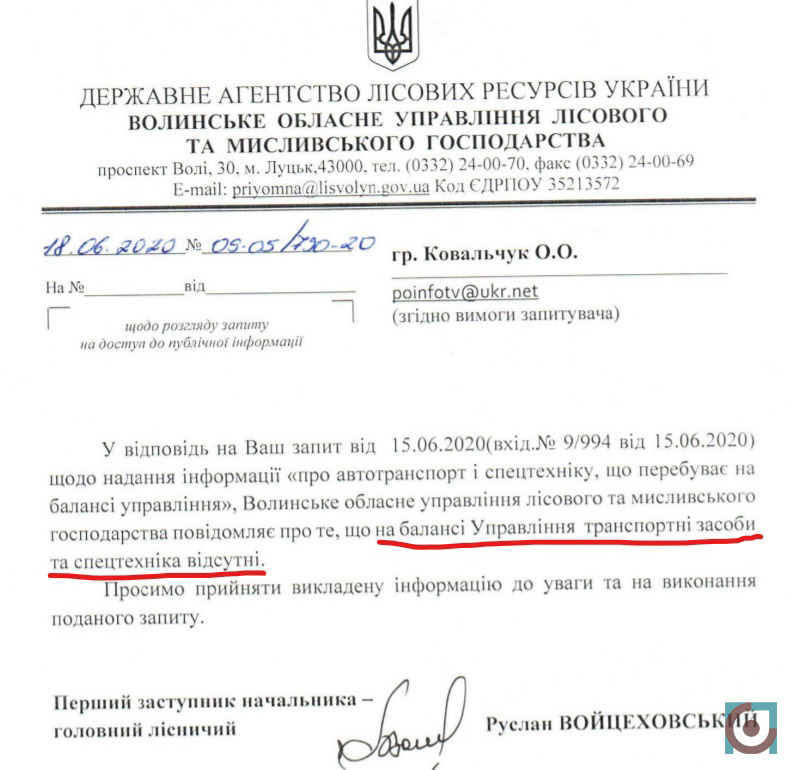 З’ясувати, хто матеріально відповідальний за цей транспортний засіб і чому на ньому пересувався начальник управління, виявилось складно. Відповідати на запит лісгосп відмовився. Право на цю інформацію «Сила правди» нині відстоює у суді.