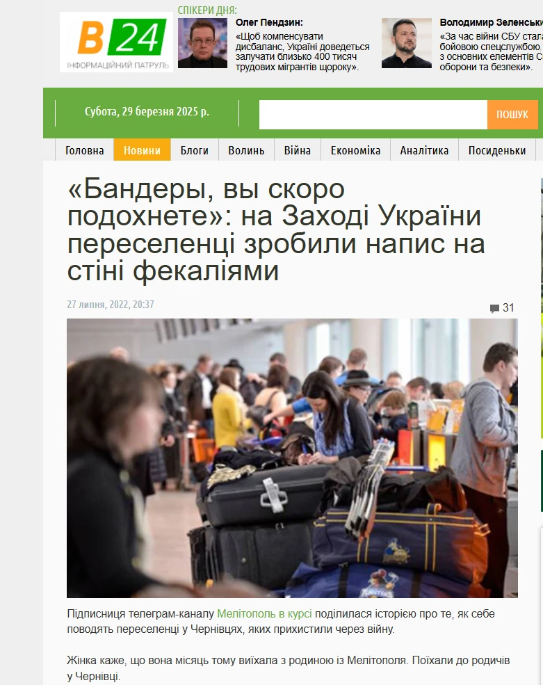 Після повномасштабного вторгнення Росії в Україну на Волинь приїхало чимало переселенців з різних регіонів України. Вже в 2022 році стало помітним неодноразове використання мови ворожнечі щодо переселенців у журналістських текстах. Через поодинокі конфлікти приїжджих з місцевими інформація з мовою ненависті почала з’являтися різних у соцмережах і на сайтах. Наприклад, ось реальні заголовки з медіа за 2022 рік: «Бандеры, вы скоро подохнете»: на Заході України переселенці зробили напис на стіні фекаліями (Волинь24), «Пускай и дальше привозят в закрытых гробах»: переселенці на Волині зчинили скандал через мову (Громадське Інтерактивне Телебачення), тощо.