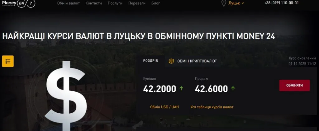 «Сила правди» з’ясувала, що в Луцьку теж донедавна діяв пункт обміну валюти «Money 24/7» – він займає офіс у самісінькому центрі, на проспекті Волі. Щоправда, наразі обмінник призупинив роботу. На дверях закладу прикріпили повідомлення для клієнтів: