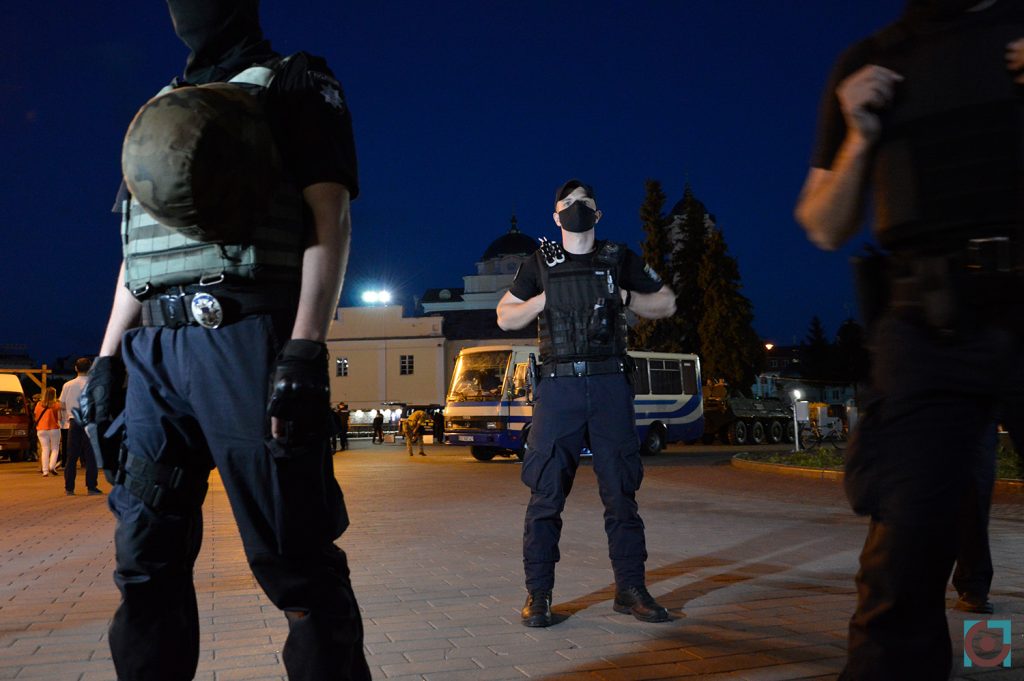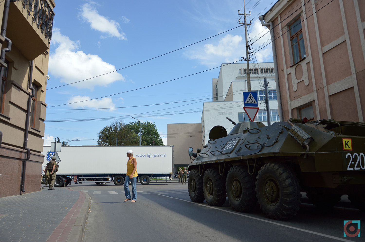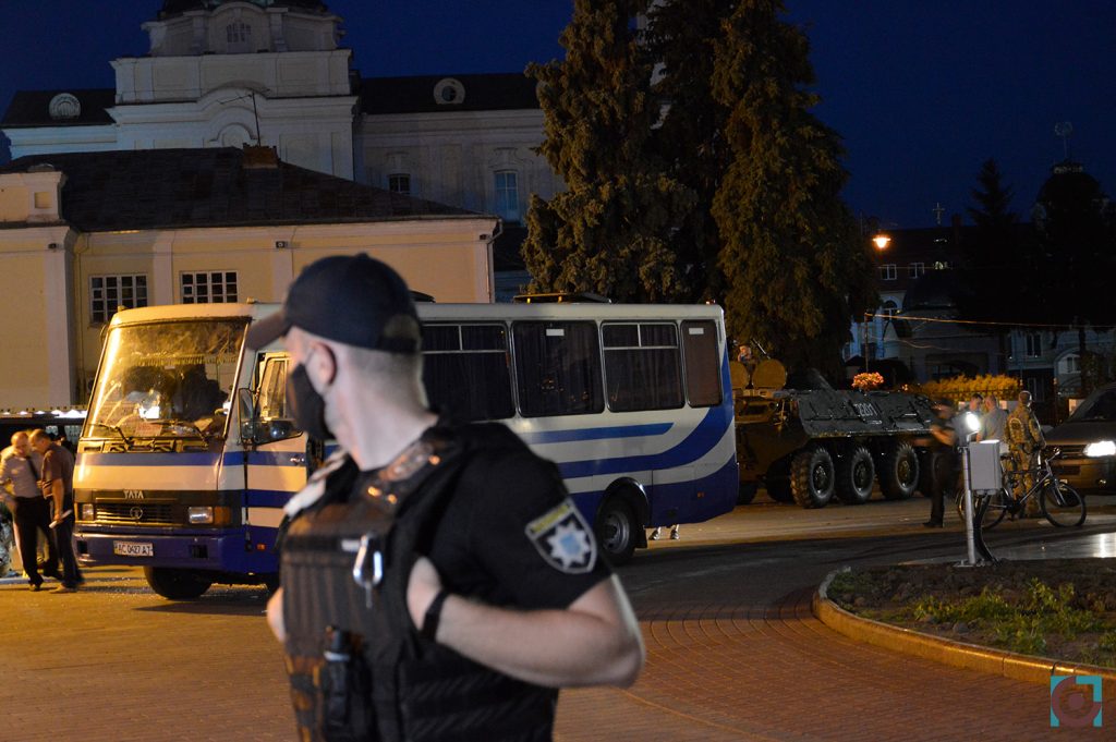Вся центральна частина міста перекрита. Великими вантажівками правоохоронці перекрили вулиці Шевченка, Богдана Хмельницького, Волі, Винниченка, виїзди із Театрального майдану. Є війсьова техніка. Деталі у нашій фотогалереї.