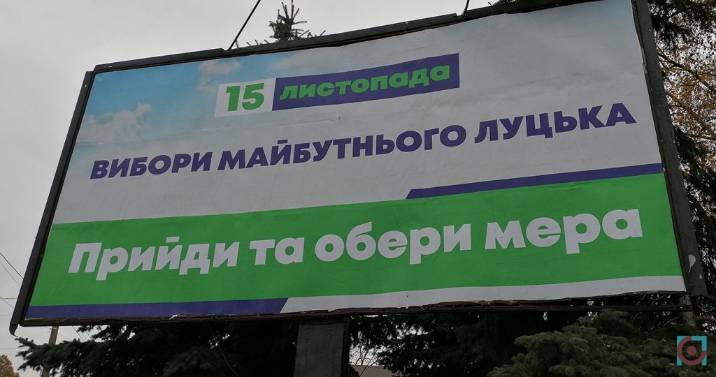 У так званий день тиші та в день проведення другого туру виборів міського голови Луцька в обласному центрі Волині щонайменше на 43 білбордах розмістили оголошення з ознаками прихованої агітації в стилістиці політичної сили одного з кандидатів та без вихідних даних про тираж та замовника.