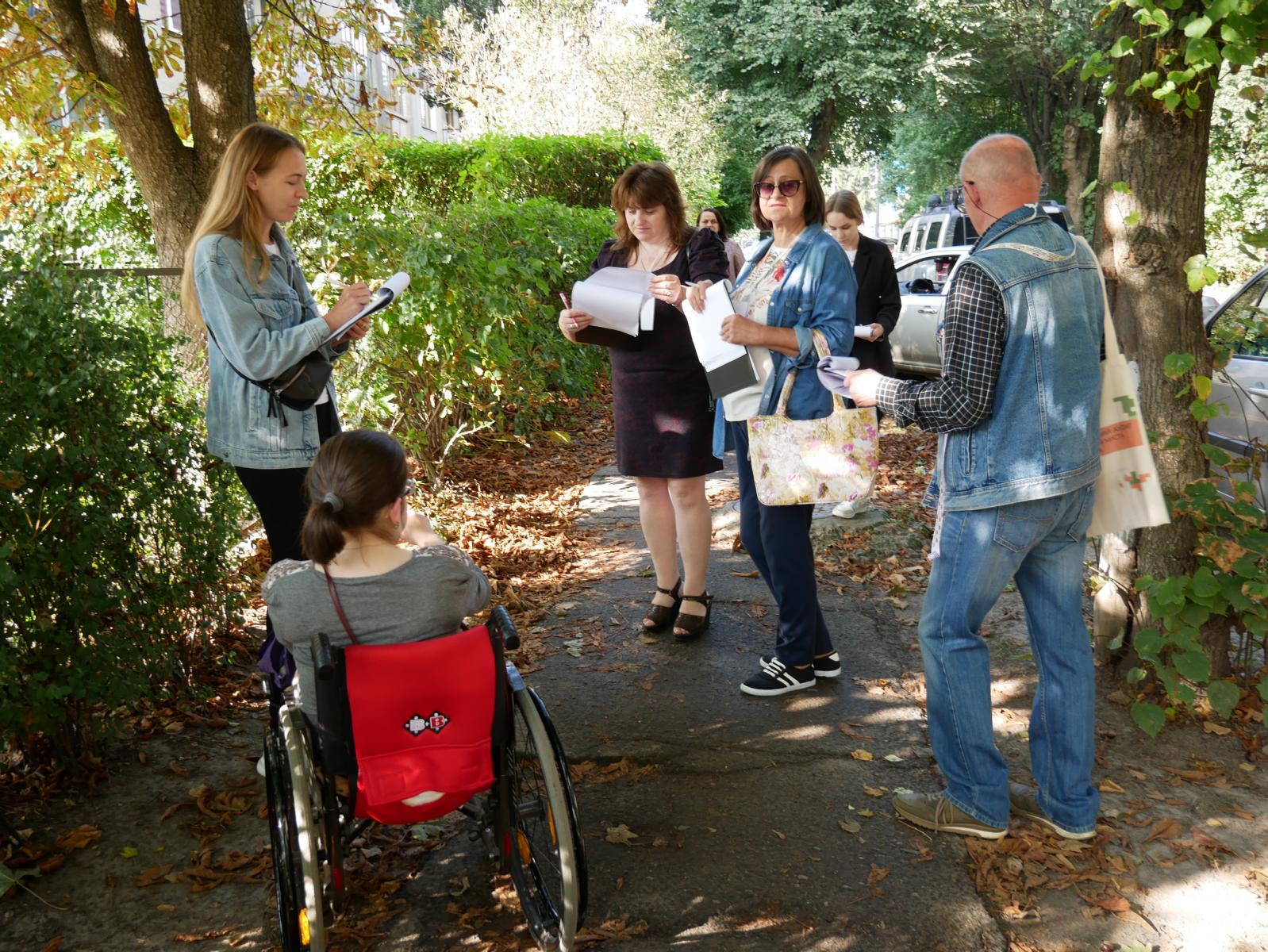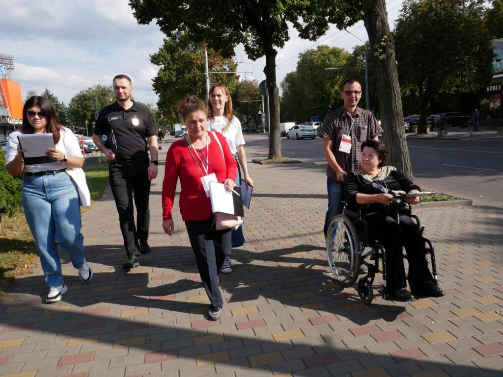 Серед учасників польових груп були люди різного соціального стану і віку, в тому числі люди із інвалідністю. Вони могли наочно перевірити доступність міських вулиць і тротуарів. Фото надане організаторами