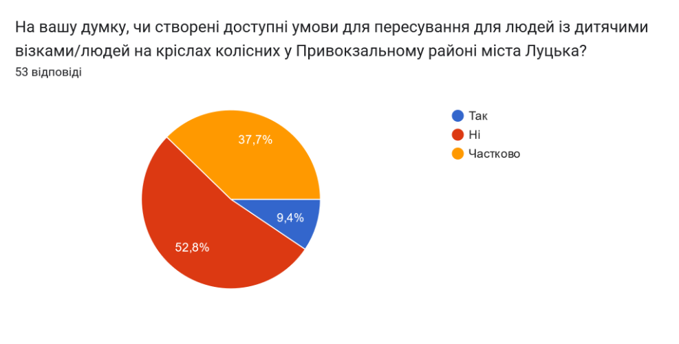 Скріншот із попередніх результатів опитування мешканців та гостей Привокзального мікрорайону. Повні результати планують презентувати наприкінці 2023 року.