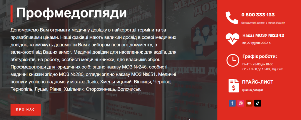 У Луцьку на вулиці Ковельській, 5 вже не перший рік функціонує приватний медичний кабінет. Яскрава зовнішня реклама пропонує довідки для водіїв, власників зброї, особисті медичні книжки та інші. Пошук в мережі інтернет видає за цією адресою приватне підприємство «Начмед», яке позиціонує себе як заклад, де будь-яку медичну довідку можна отримати всього за 15 хвилин.
