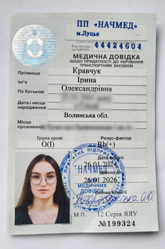 Виявилося, що для оформлення довідки для керування транспортними засобами достатньо визначити групу крові і пройти обстеження офтальмолога й терапевта.