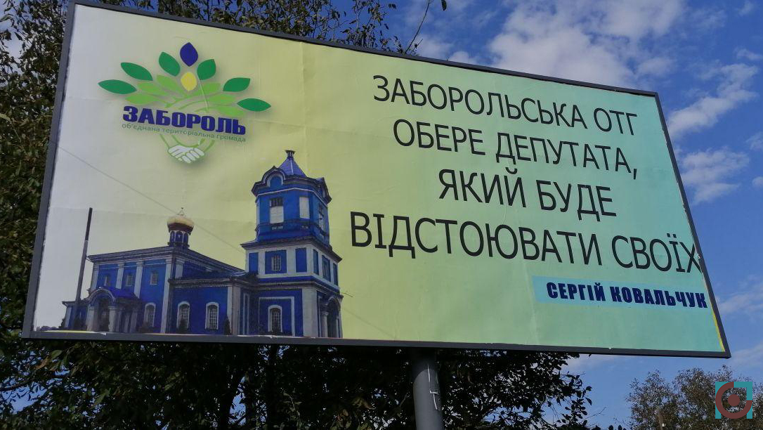 «Заборольська ОТГ обере депутата, який буде відстоювати своїх. Сергій Ковальчук», – йдеться на білборді. За даними сайту Центральної виборчої комісії Сергія Ковальчука зареєстрували кандидатом у депутати Луцької міської ради в окрузі №1, до якого входить і село Забороль, 24 вересня.