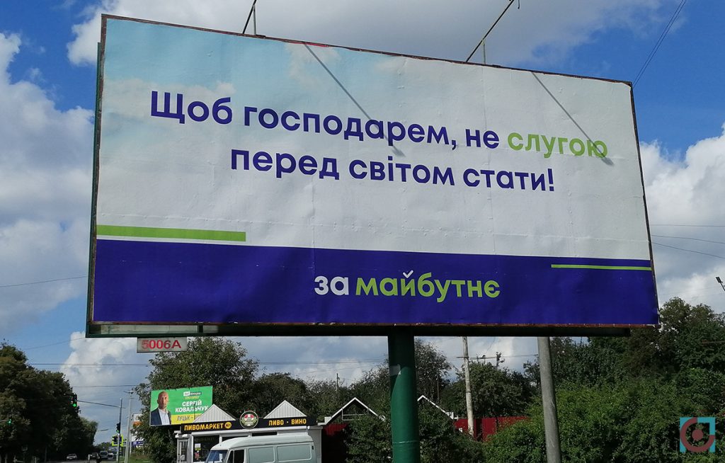 До цього на цьому ж рекламному носії 8-го вересня «Сила правди» фіксувала політичну рекламу із зображенням Сергія Ковальчука виконану в стилістиці партії «Слуга народу». Теж без вихідних даних, однак тоді чоловік ще не був зареєстрованим кандидатом.