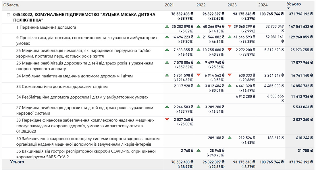 Схожа ситуація була і в попередні три роки: за стоматологічні послуги медзаклад отримував від 2,1 до 4,4 мільйонів гривень на рік, а загальна сума оплат від НСЗУ становила від 78,5 до 93 мільйонів гривень.
