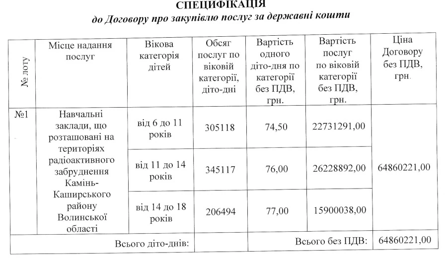У вересні 2025 року відкриті торги із закупівлі послуг харчування дітей, які постраждали внаслідок Чорнобильської катастрофи, провело управління соціального захисту населення Камінь-Каширської райдержадміністрації. Таку ж послугу в результаті тендеру замовило й управління соціальної та ветеранської політики Луцької РДА, яке відповідає за школярів Колківської громади.