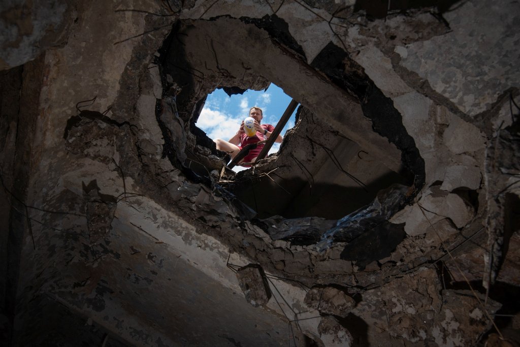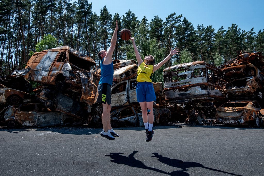 Знімками спортивного фотографа Миколи Синельникова поділилася Асоціація спортивних журналістів України. На них спортсмени сфотографовані на руїнах спортивних об’єктів, що були знищені російськими окупантами в різних кутках України: стадіонах, спортивних залах, дворових майданчиках тощо.