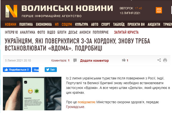 У заголовку «Українцям, які повернулися з-за кордону знову треба встановлювати додаток «Вдома.Подробиці» є маніпулятивне узагальнення. Насправді, йде мова не про всіх громадян, які були за кордоном. На сайті ІА «Волинські новини» далі в тексті пояснюють, що після повернення з Росії, Індії, Португалії та Великої Британії треба встановлювати застосунок «Вдома». Однак прочитавши лише заголовок, можна подумати, що це стосується всіх.