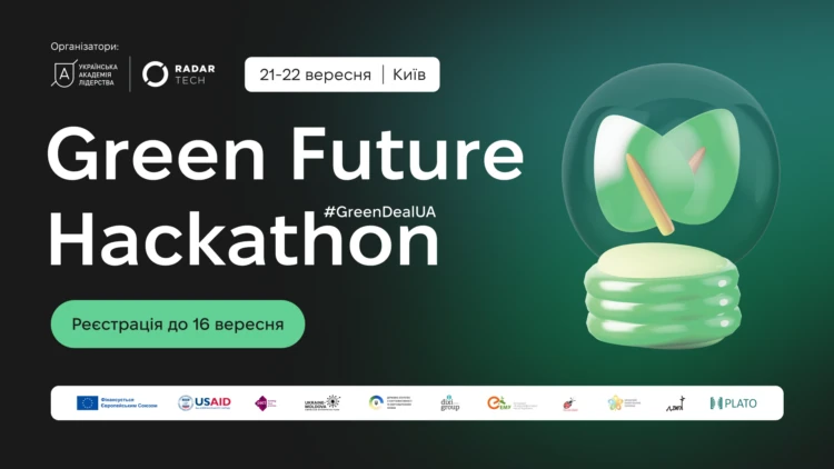 Довідково. Green Future Hackathon організовано Українською академією лідерства у співпраці з Radar Tech в рамках проєкту «Інтеграція сталого розвитку в Україні відповідно до Європейського зеленого курсу*», що фінансується ЄС. Захід реалізується за підтримки Програми сприяння громадській активності «Долучайся!», що фінансується Агентством США з міжнародного розвитку (USAID) та здійснюється Pact в Україні, а також Ukraine-Moldova American Enterprise Fund у партнерстві з Держенергоефективності України.