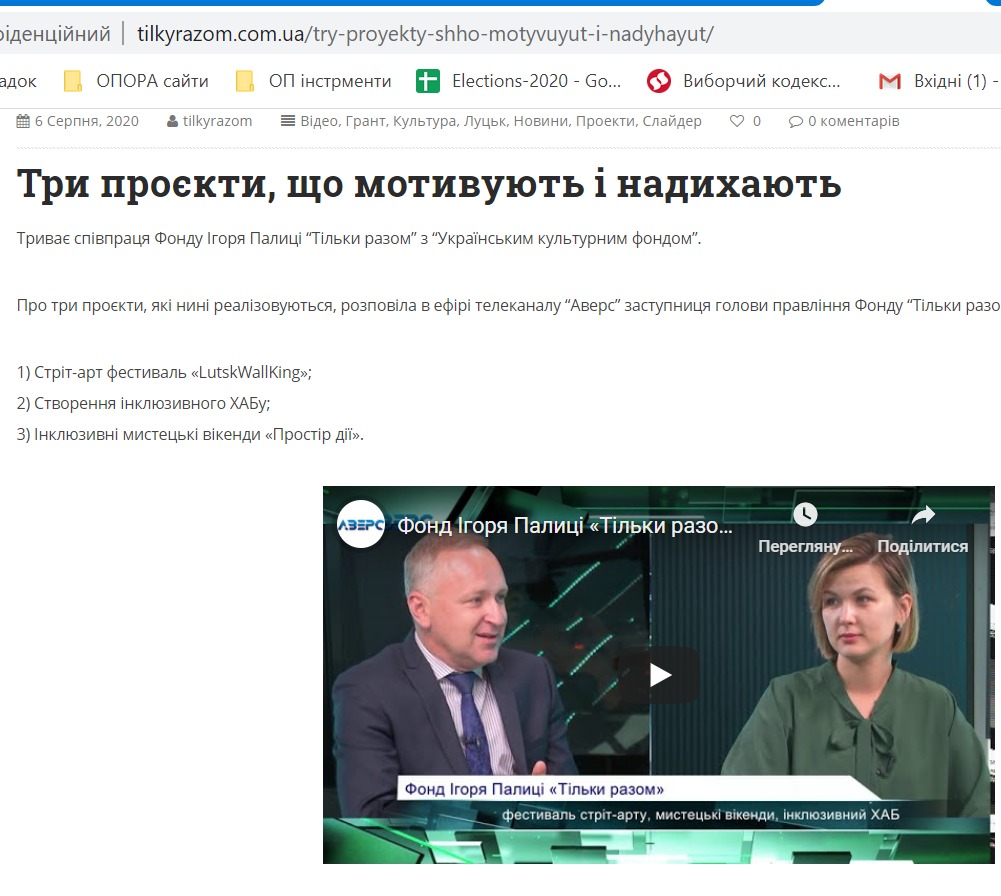 6 серпня на сайті БФ «Тільки разом» було опубліковано ефір телеканалу «Аверс» із представницею фонду, в якому йшлося про різні прояви благодійності, спрямовані на підтримку стріт-арт фестивалю «LutskWallKing», створення інклюзивного ХАБу та проведення інклюзивних мистецьких вікендів «Простір дії».