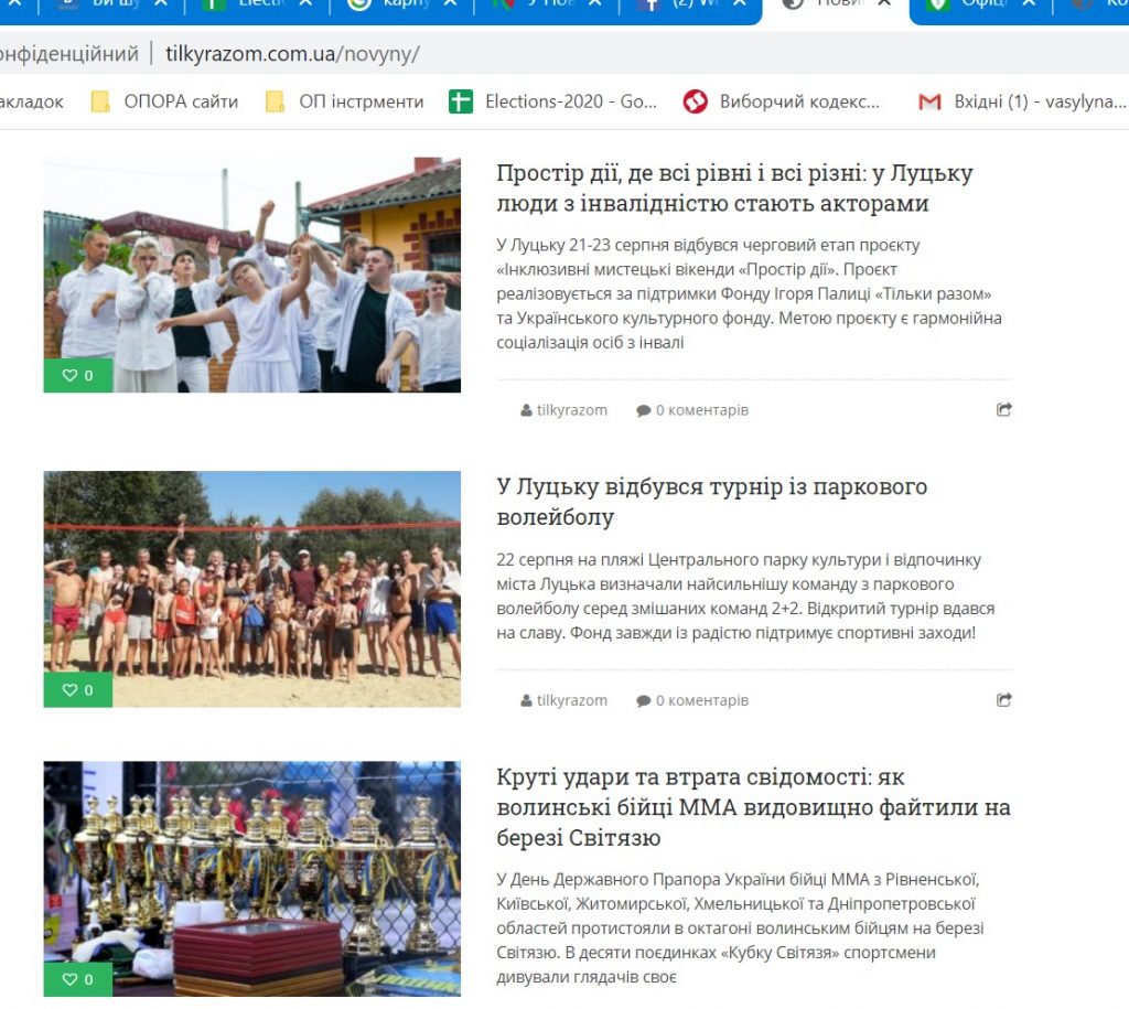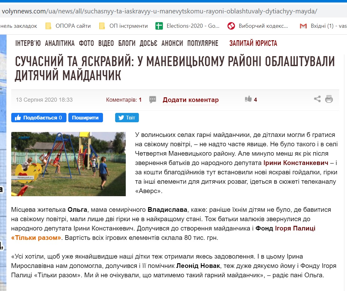 13 серпня на сайті видання «Волинські новини» було виявлено публікацію «Сучасний та яскравий: у Маневицькому районі облаштували дитячий майданчик». Кошти на його встановлення у сумі 80 тис. грн надав БФ «Тільки разом».