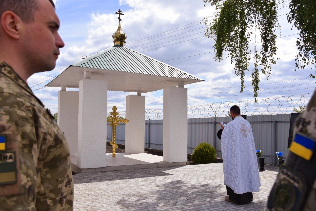 А військовий капелан звершив чин освячення каплички, яку збудували на території військового містечка на честь Воскресіння Господнього та в пам’ять про загиблих воїнів-прикордонників.