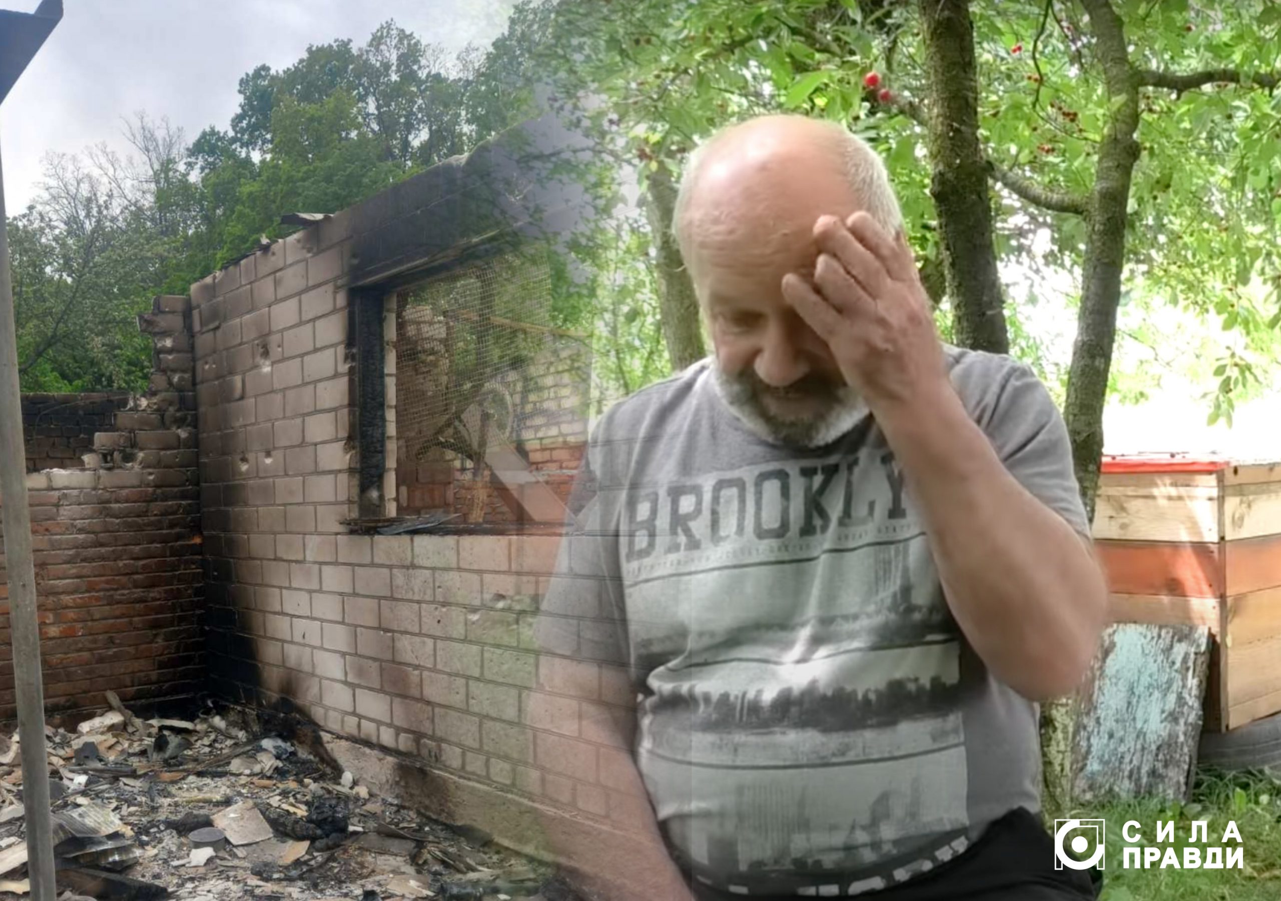 «В моє подвір’я прилетіло перед ранком. Як лупануло… ну близько ж… а я після прильоту завжди виходив і дивився на свою хату. Вийшов, глянув, ніби ціла хата. Пішов, ліг в підвалі. Чую: тріщить щось. Вийшов, а мій сарай вже палає. І ото шифер вже почав тріскатися. Там в мене на горищі була дошка заготовлена на вулики. Куба два, мабуть, було. А в середині корпусів із 40 стояло з рамками. Медогонка… Ну дуже багато речей… все багатство було в мене там, у цьому сараї. Все погоріло. Потрапив я в таку… та, що там я, вся Україна потрапила в халепу».