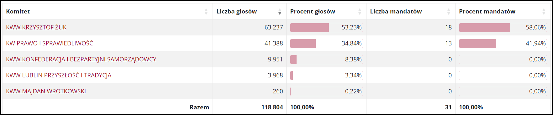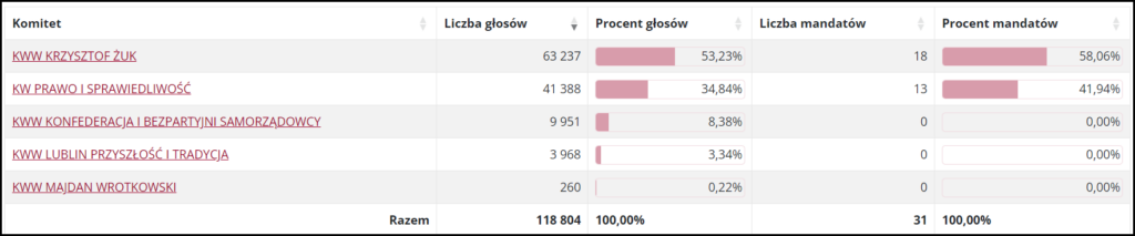 Водночас «Право і справедливість» посіла друге місце на виборах до Люблінської міської ради, програвши коаліції партій навколо чинного мера майже 20% голосів. Ці дві сили і розподілять 31 мандат.