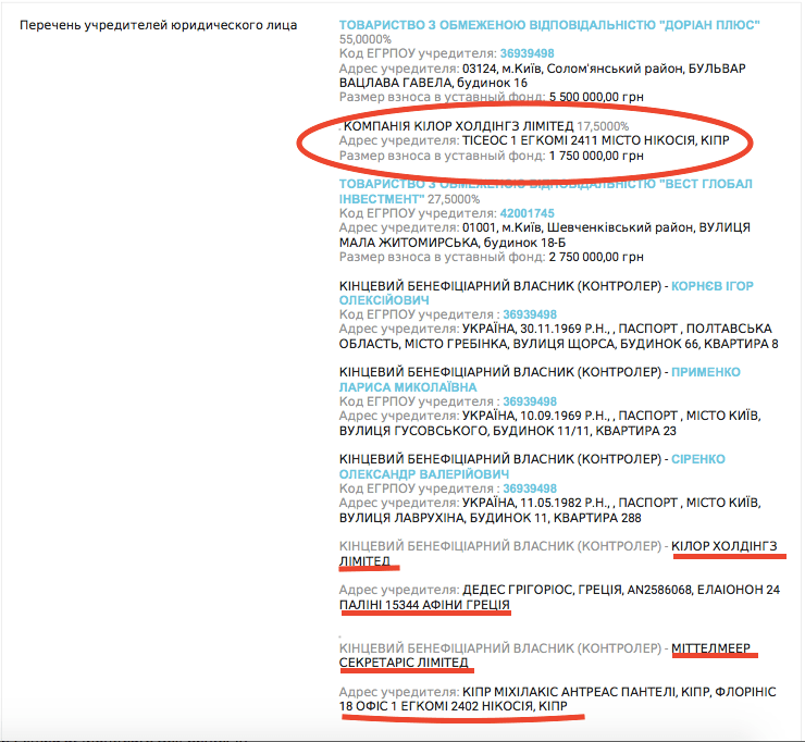 До слова, ті ж МІТТЕЛМЕЕР СЕКРЕТАРІС ЛІМІТЕД з Кіпру та КІЛОР ХОЛДІНГЗ ЛІМІТЕД з Греції є засновниками іншого підприємства, що займається вирощуванням ягід на Волині – ТОВ «Чорниця Волині». Обидва підприємства «Україна-Голд Сад» та «Чоринця Волині» також мають одного на двох керівника Юрія Малежика.