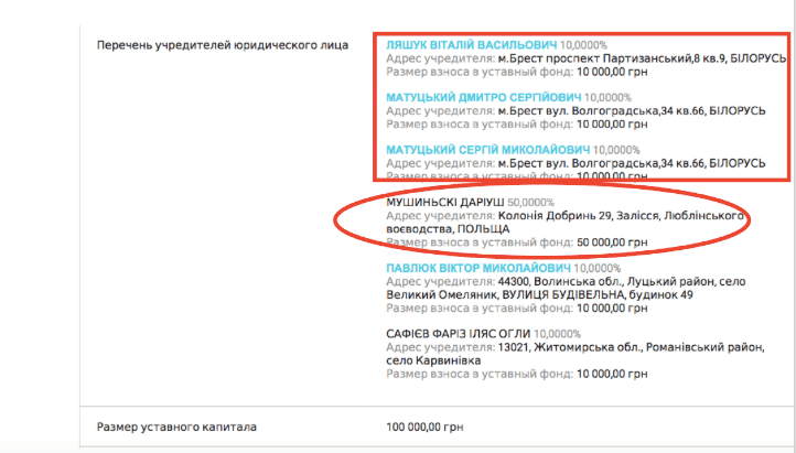 Ще один отримувач дотацій – ТОВ «УПБ Сад» має серед засновників сусідів-поляків і білорусів.