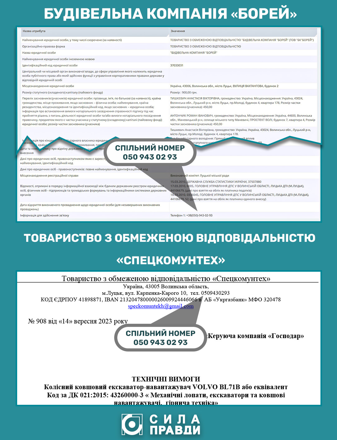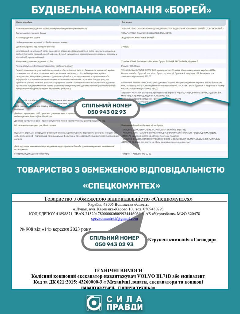 Крім таких загадкових спільних тендерних дій в обох конкурентів виявився і спільний контактний телефон. Це номер директора ТОВ «Спецкомунтех» Михайла Бухарова. Він вказує його у документації, яку подає на тендери. І цей же номер вказаний у реєстраційних даних компанії «Борей».