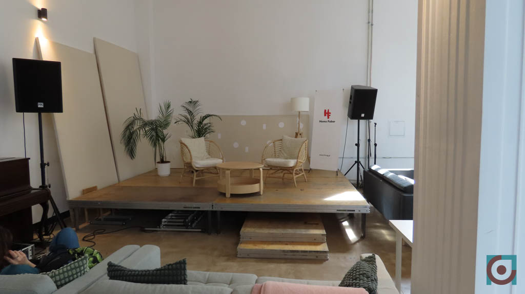 Навпроти бібліотеки – сцена для проведення виступів та фестивалів. Перед сценою кілька диванів та ряди стільців. Тут проводять різні заходи, вистави та фестивалі. Одна із останніх подій – фестиваль фільмів про права людини.
