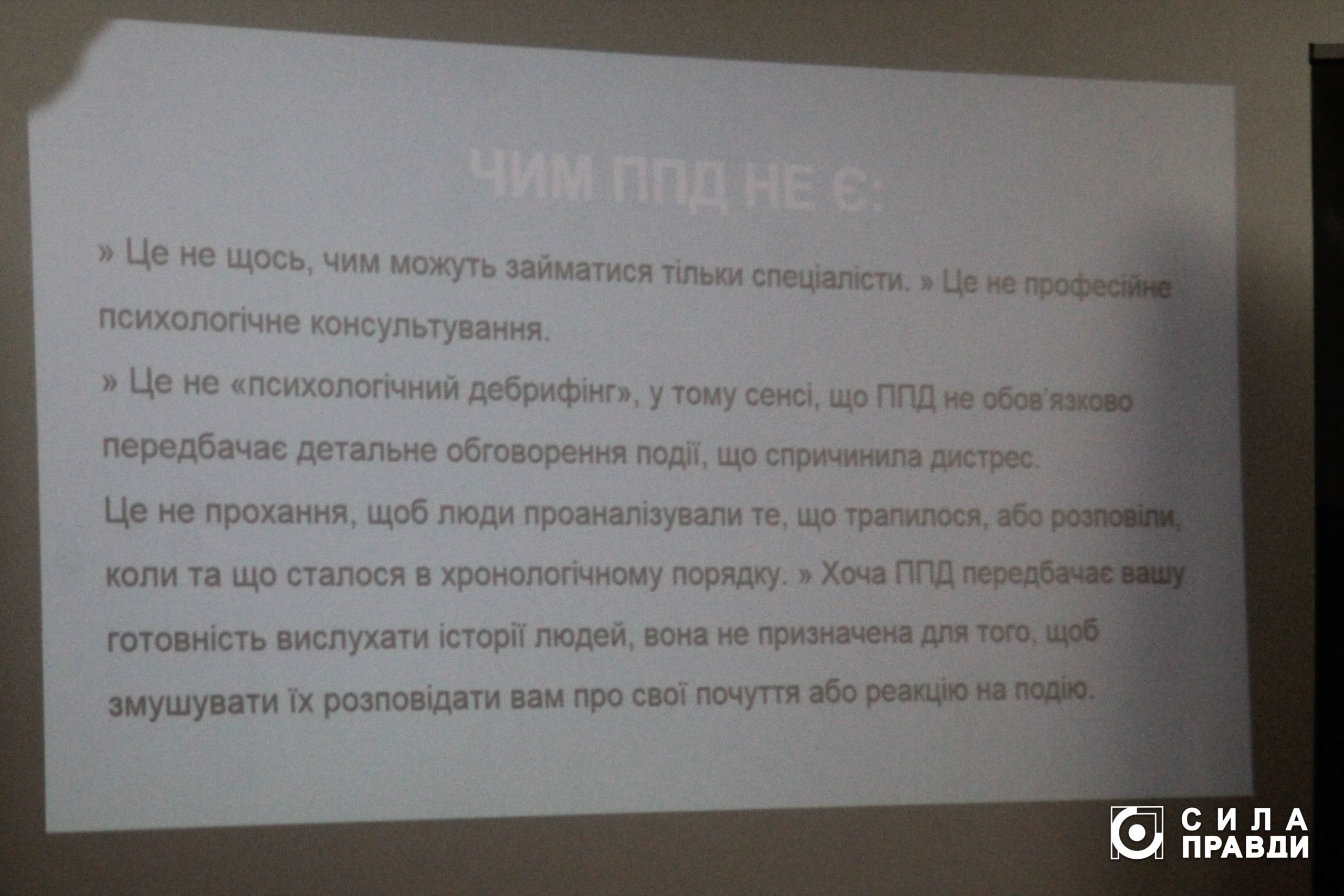 Центр журналістських розслідувань «Сила правди» побував на одному з таких занять і розповідає про першу психологічну допомогу, яку може надати кожен з нас собі, своїм близьким і оточуючим.