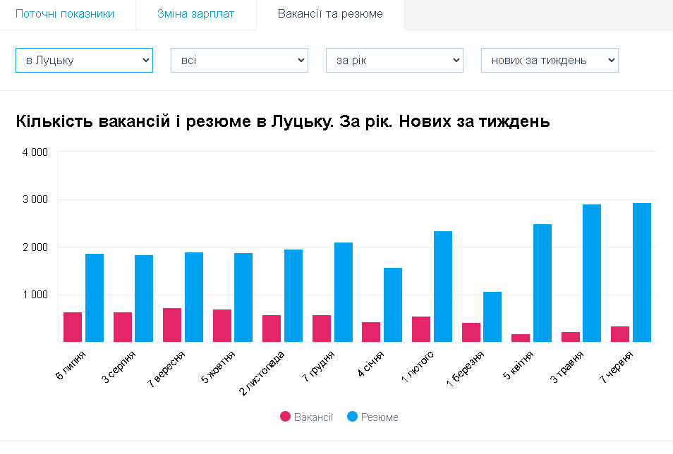 Щодо шукачів роботи, то тривожна тенденція, за даними сайту, зберігається – їх значно більше, ніж вакансій.