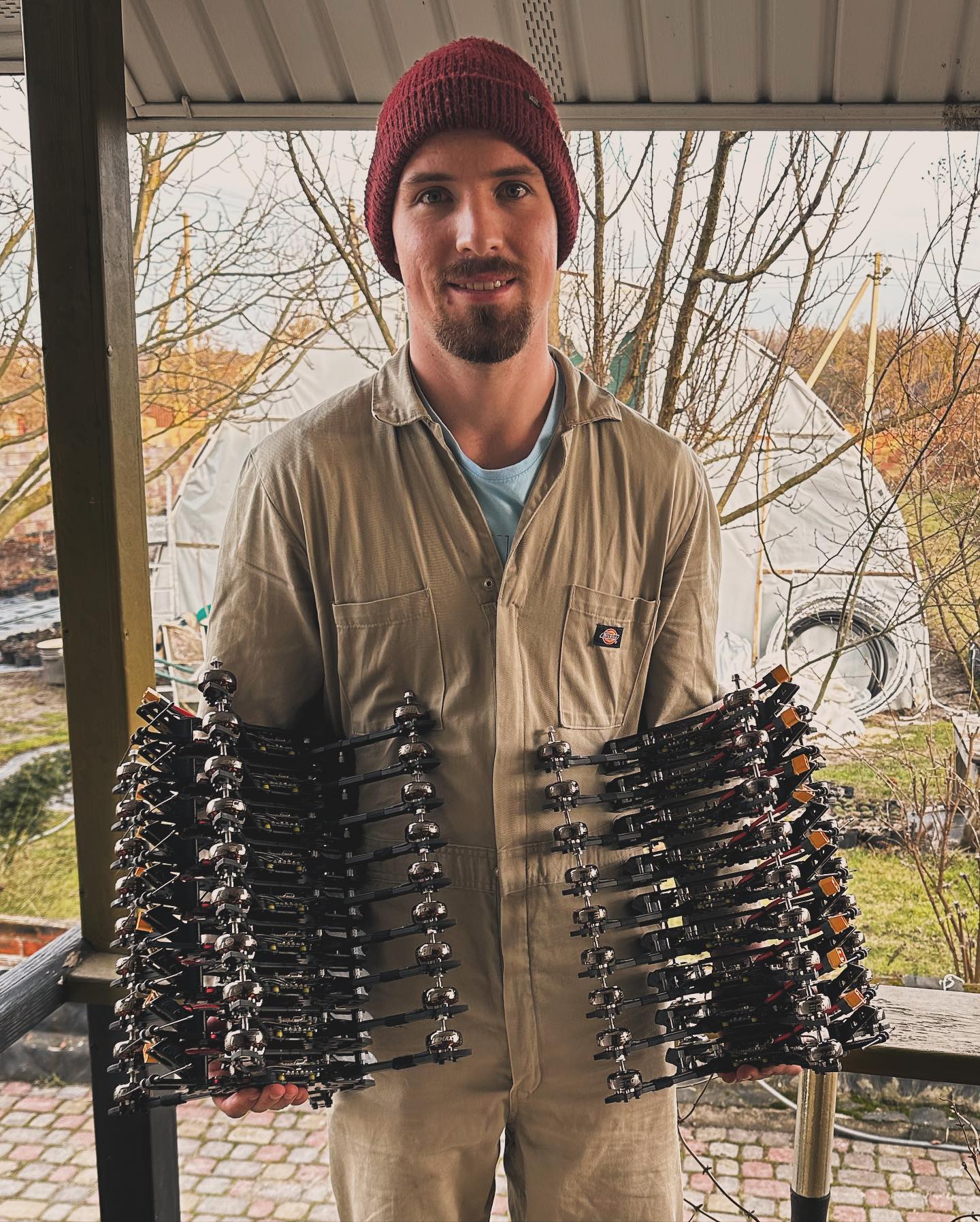 Грошей, каже, тепер достатньо для налагодження виробництва FPV-квадрокоптерів. Нині обговорює замовлення з військовими, щоб скласти такі камікадзе, що відповідають їхнім потребам.