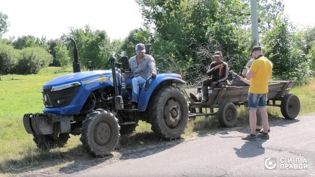 Раптом на наші очі потрапляє тракторець з причіпом. Перепиняємо. Питаємо, як живеться?