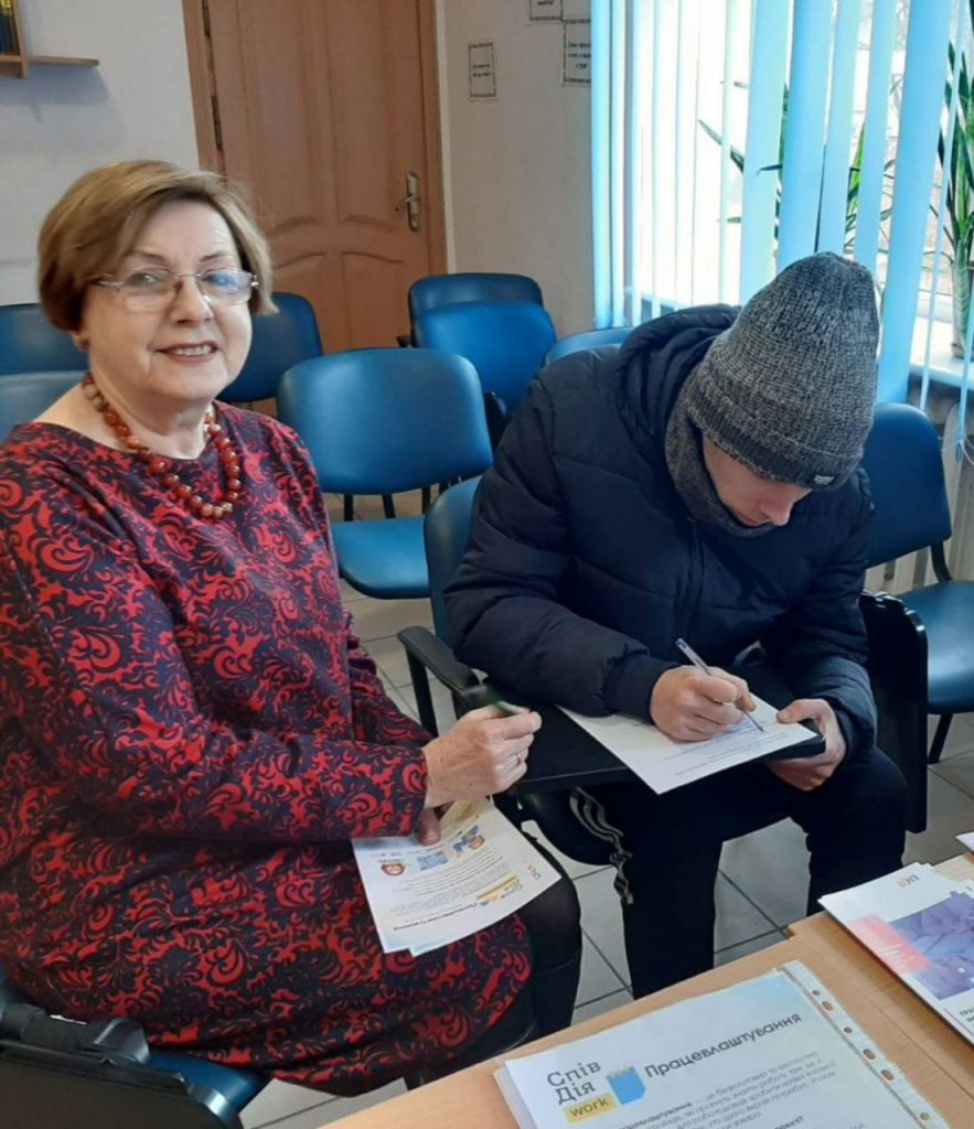 Шукачі роботи мають можливість пройти курси, отримати сертифікат державного зразка безкоштовно. Це і англійська мова, і польська, і державна українська мова, бухгалтерія, менеджмент, IT-професії, і т.д. У нас також є курс «Як знайти роботу в умовах війни». Для цього є окремий фахівець в проекті і він працює з такими запитами, підказує, радить, виясняє і направляє на курси. Є люди, які вже закінчили курси і знайшли роботу. Багато людей працює на фрілансі.