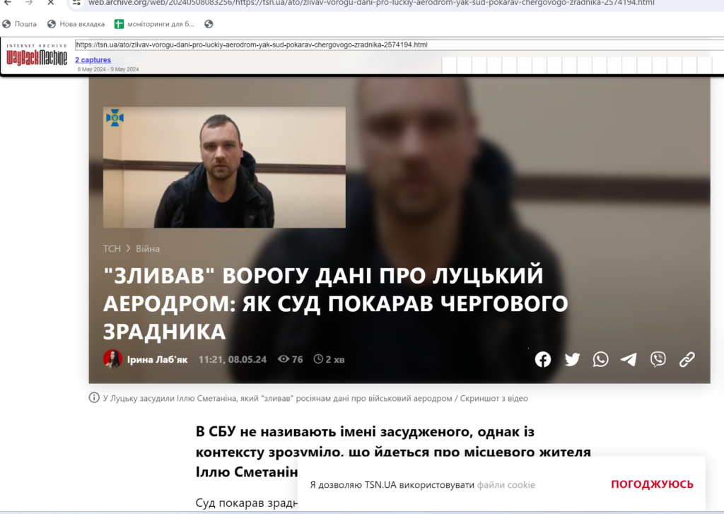 Інформація про недостовірність новин з’явилася на фейсбук-сторінці Луцького міськрайонного суду. Адже справа щодо лучанина Іллі Сметаніна на момент публікації новин перебувала в провадженні суду, але вирок по ній тоді ще не ухвалювався. Після цього повідомлення на сайті ТСН.ua виправлили новину та видалили інформацію, що йдеться про Іллю Сметаніна. Знайти першу версію новини вдалося за допомогою сайту web.archive.org. А от на сайті Vector news досі є новина з неправдивою інформацією разом з фото Іллі Сметаніна.