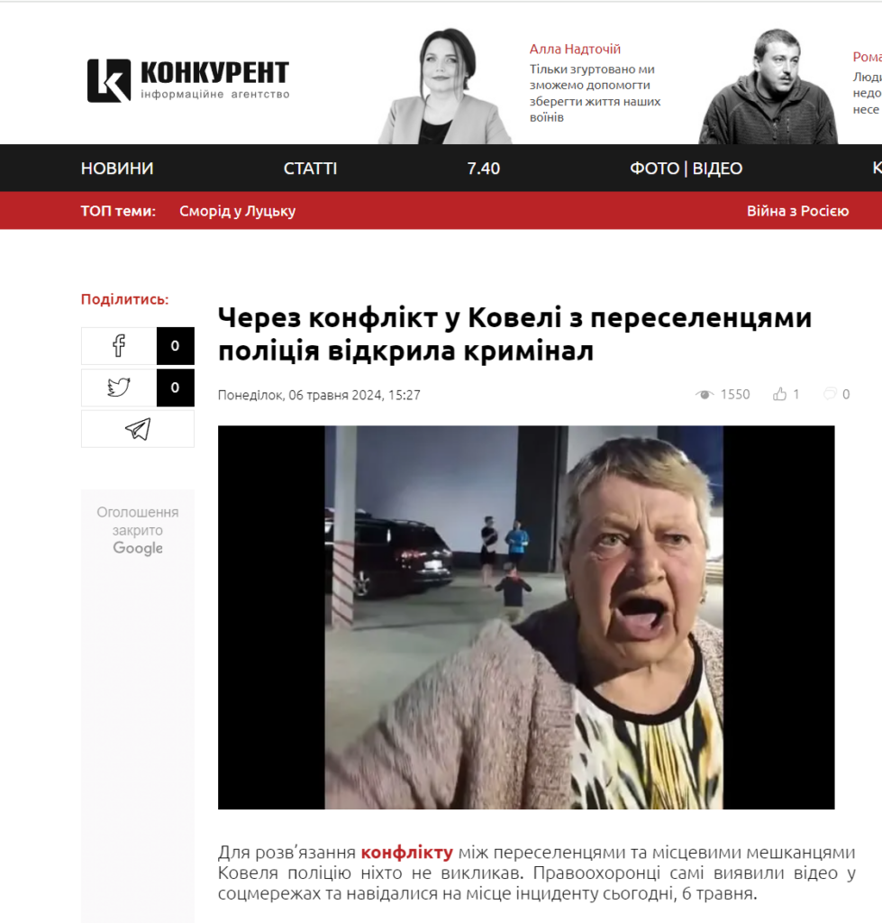 На сайті «Волинські новини» є новина із заголовком «У Ковелі виник конфлікт між ВПО та місцевими жителями, поліція відкрила кримінал». Зі слів очевидців, переселенців просили вимкнути російську музику, але їх прохання проігнорували та почалася бійка. Також прикладом негативу щодо переселенців на сайті «Конкурент» є опубліковане головне фото до новини із назвою «Через конфлікт у Ковелі з переселенцями поліція відкрила кримінал». Хоча конфлікт виник через шум від музики, у новинах зміщувались акценти саме на переселенців.