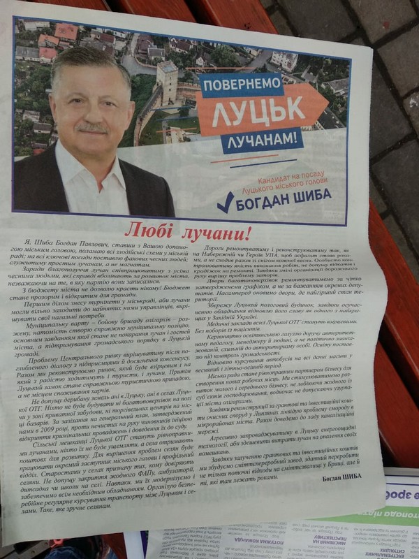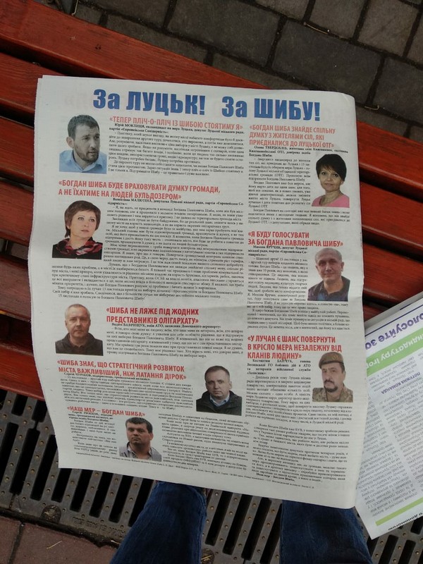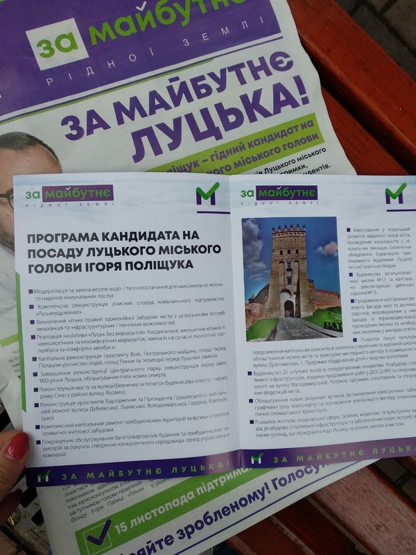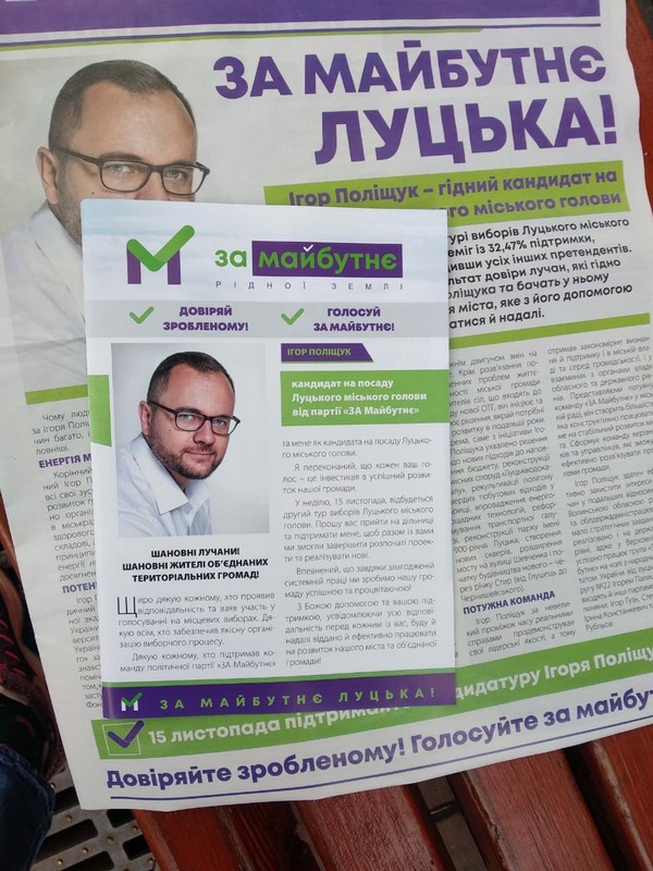 Отож, кандидати проявляють активність у кількох напрямках. Зокрема, у місті працюють «агітаційні групи» на користь кожного із претендентів на посаду міського голови. Тож після 6 листопада у Луцьку зафіксували поширення газет на користь і Ігоря Поліщука, і Богдана Шиби.