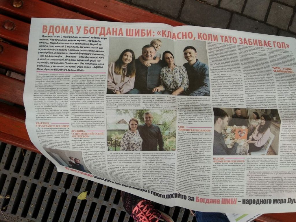 У газеті на користь Богдана Шиби міститься звернення кандидата, велике інтерв’ю із ним та родиною, а також інформацію про підтримку його з боку новообраних депутатів, активістів, військових.