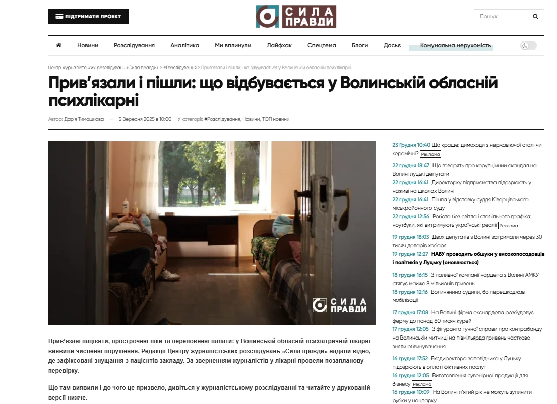 Приклад однієї з найшвидших реакцій від органів влади – розслідування про порушення у Волинській обласній психіатричній лікарні №1 міста Луцька. Ще під час роботи над цією темою Уповноважений з прав людини і лікарня почали реагувати на цю історію. Зокрема, звільнили кілька медпрацівників, винесли догани шести медичним працівникам і покарали причетних до порушення прав пацієнтів.