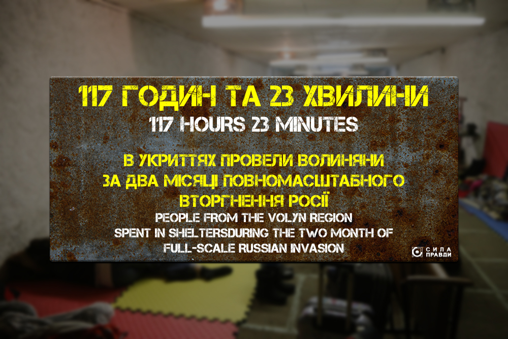 Що корисного можна було б зробити за ці майже 117 годин, замість того, щоб просиджувати їх в укритті через війну? Наприклад, приготувати 59 каструль борщу, подивитися 78 повнометражних фільмів, відвідати 59 вечірніх театралізованих екскурсій в Луцькому замку, провести за працею майже 15 повних 8-годинних робочих днів, 42 рази прокататися на велосипеді навкруги Луцька, або ж провести майже тиждень у відпустці.