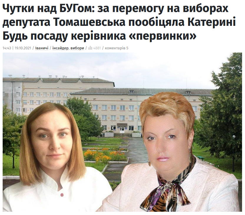 Інтернет-видання «Буг» цього разу також допустило поширення чуток у рубриці «Новини». Йдеться про звинувачення на адресу голови Іваничівської селищної ради Лідії Томашевської у просуванні кадидатки на виборах у раду Катерини Будь на посаду керівниці медзакладу. В такій новині немає коментарів жодної із героїнь, хоча їх звинувачують у тіньовому лобізмі. Розділ «Чутки над БУГом» не виправдовує поширення таких публікацій, адже їх також можна знайти у рубриці «Новини».
