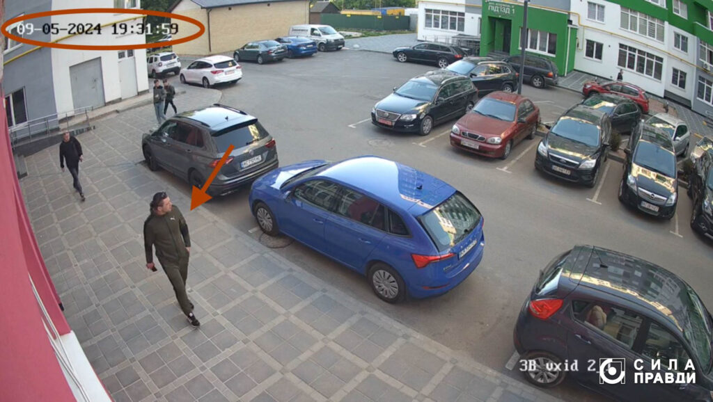 Чоловік, якого ви побачите на фото нижче – Артем Приходько. Це скріншоти з камер спостереження будинку, де мешкає засуджений. За датою і часом зйомки відео можна зробити висновок, що волю Приходька ніщо не обмежує. Адже він не тільки безперешкодно розгулює вулицями серед білого дня, а й сідає за кермо авто в комендантську годину.