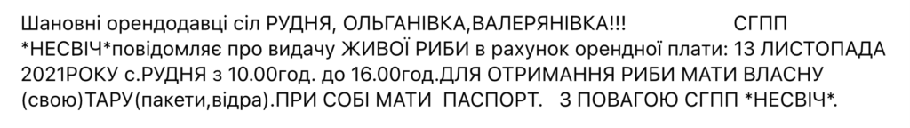 «У мене є торгові точки з рибою у Луцьку. Рибу ми брали в Хмельницькій області, в Рівненській області. У нас риби не було. Тоді в Несвічі був рибгосп. Вирощували карась, карп і продавали підприємцям таким як я. Я з ними познайомився і приїжджав кожен день і там в них забирав цю рибу. Господарство вони вели так, наприклад, можна було виростити 30 тонн риби, а вони вирощувати 3-5 тонн. Люди заробляли на тому, що брали в банку гроші під оце все і якось так це було.