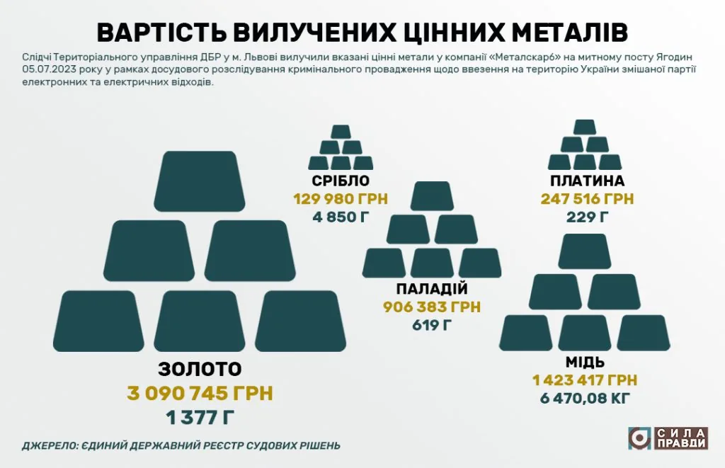 Товар вилучили на митному посту «Ягодин». За кордон вантаж везло київське підприємство «Компанія «Сталь-сервіс». Інспектори вилучили вказаний товар і склали щодо директора компанії протокол про порушення митних правил, зокрема щодо приховування від митного контролю. Під час розгляду справи з’ясувалося, що Територіальне управління ДБР розслідує кримінальне провадження щодо протиправного ввезення на територію України змішаної партії електричних та електронних відходів в тому числі подрібнених електронних плат. Тож справу про порушення митних правил передали до управління ДБР для приєднання до кримінального провадження.